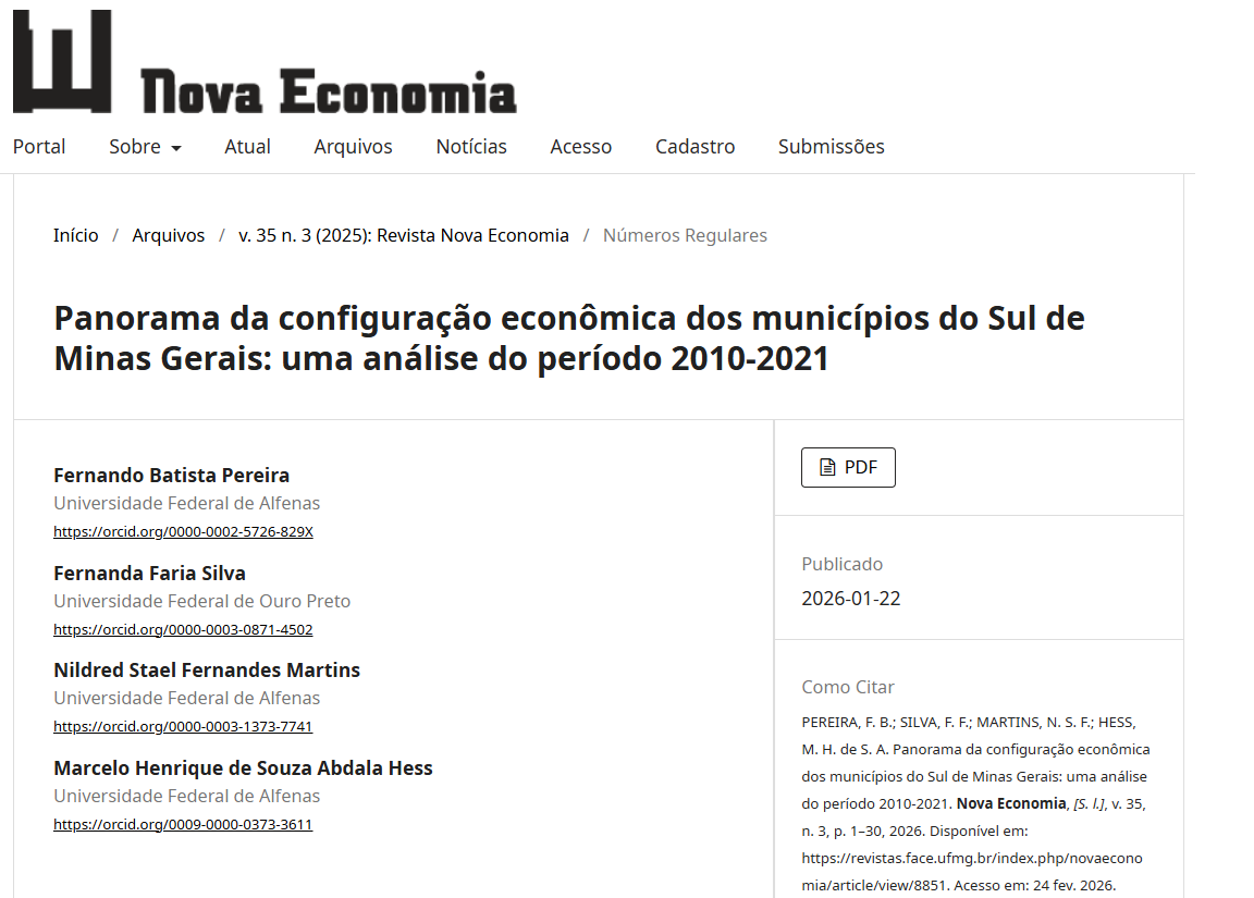 Apesar de ser uma das regiões economicamente mais importantes do estado de Minas Gerais, ainda são relativamente poucos os estudos recentes que se ocupam de entender a configuração socioeconômica atual do Sul de Minas Gerais. O objetivo deste artigo é identificar se existe uma nova reconfiguração hierárquica dos municípios dessa região. Para isso, foram levantados e analisados dados, junto à Fundação João Pinheiro, Instituto Brasileiro de Geografia e Estatística (IBGE) e à Relação Anual de Informações Sociais (RAIS), referentes ao produto interno bruto total e por setores e ao emprego entre os anos de 2010 e 2021. Conclui-se que houve deslocamento do eixo dinâmico de Poços de Caldas para Pouso Alegre e Extrema, ampliando a funcionalidade e influência desses municípios sobre os demais municípios da região Sul de Minas.